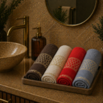 Apportez une touche raffinée à votre salle de bain avec cette serviette en coton doux et absorbant, sublimé par une élégante bande jacquard aux finitions sophistiquées. Conçue pour allier confort, style et qualité, elle offre une excellente capacité d’absorption et une grande douceur au toucher.
