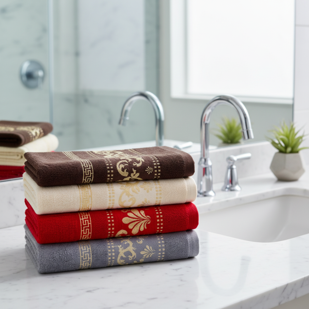 Offrez à votre salle de bain une touche de luxe avec ce pack de serviettes au design jacquard raffiné et aux finitions élégantes. Douces, épaisses et très absorbantes, elles allient confort et sophistication pour un usage quotidien tout en douceur.