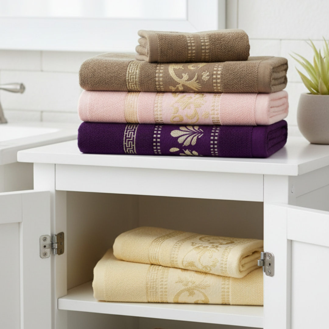 Offrez à votre salle de bain une touche de luxe avec ce pack de serviettes au design jacquard raffiné et aux finitions élégantes. Douces, épaisses et très absorbantes, elles allient confort et sophistication pour un usage quotidien tout en douceur.
