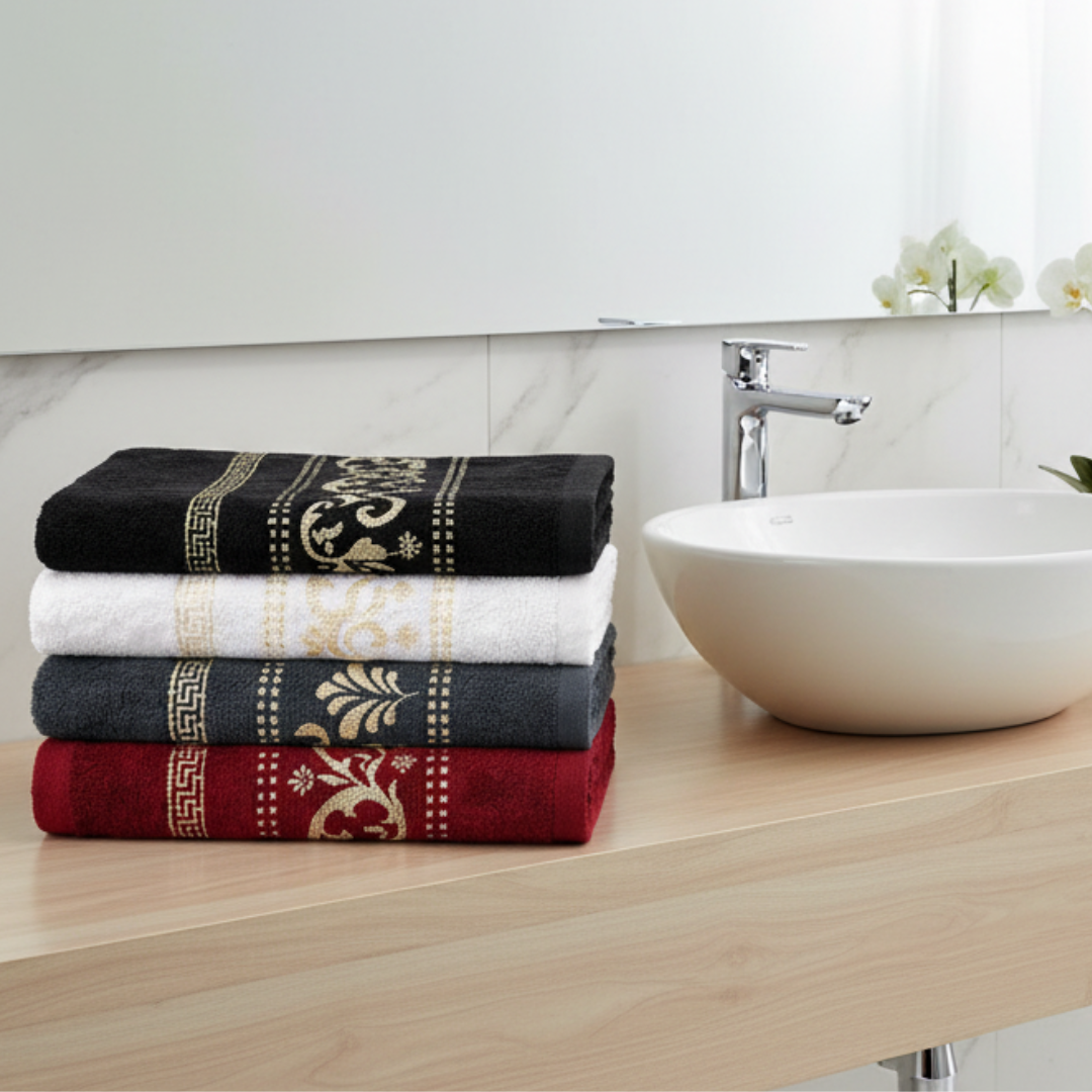 Apportez une touche raffinée à votre salle de bain avec cette serviette en coton doux et absorbant, sublimé par une élégante bande jacquard aux finitions sophistiquées. Conçue pour allier confort, style et qualité, elle offre une excellente capacité d’absorption et une grande douceur au toucher.