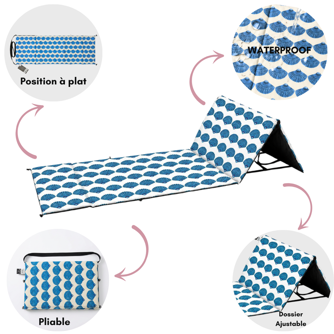 Offrez-vous un moment de détente absolu avec ce tapis de plage pliable alliant confort, praticité et élégance. Doté d’un dossier réglable, il vous permet de profiter d’une position idéale pour lire, bronzer ou simplement vous relaxer en toute sérénité. Sa matière imperméable (waterproof) empêche l’eau de pénétrer, gardant le tapis sec même sur sol humide, tandis que son entretien facile vous permet de le nettoyer rapidement après chaque utilisation.
