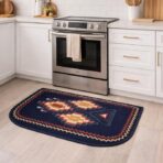Sublimez votre cuisine avec ce magnifique tapis cuisine au style berbère moderne, parfait pour apporter une touche élégante et chaleureuse à votre décoration. Son fond bleu marine profond, associé à des motifs géométriques traditionnels, crée un rendu chic et authentique qui s’adapte à tous les styles de cuisine.